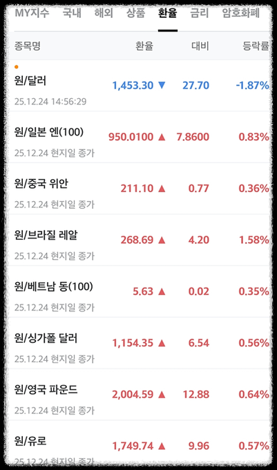 사실은 말이 안되는 일이 벌어진 것은 맞습니다. 너무 환율이 오르자 국가가 개입해서 기업들과 기금들에게 보유중인 달러를 팔으라고 거의 강요하다 시피 했고, 이에 기관, 기업들이 할 수 없이 '달러'를 팔다 보니, 다른 '돈'들은 다들 난리인데 '달러'만 일시적으로 내리는 그런 현상이 보인 것입니다.